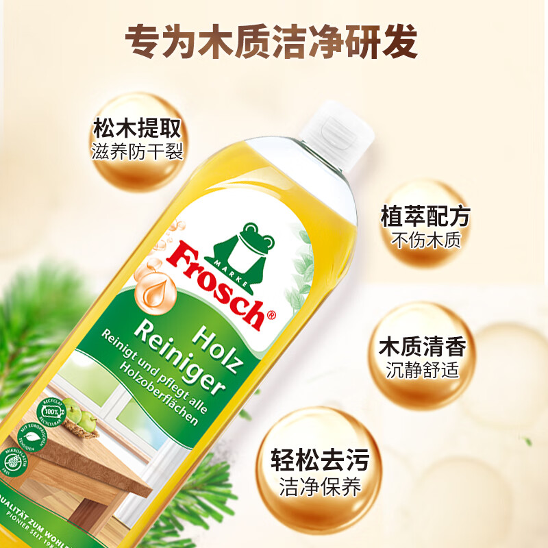 Frosch 实木家具清洁剂德国原装进口!专为实木家具设计,有效清除污渍、恢复光泽。特别配方温和不伤木材表面。
