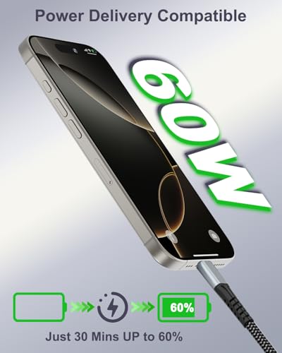 The KINPEE USB-C Fast Charging Cable is designed to provide ultra-fast charging speeds of up to 60W for your latest iPhones, such as the iPhone 16 and 15 series. This cable ensures quick battery recovery, allowing you to stay connected on-the-go.