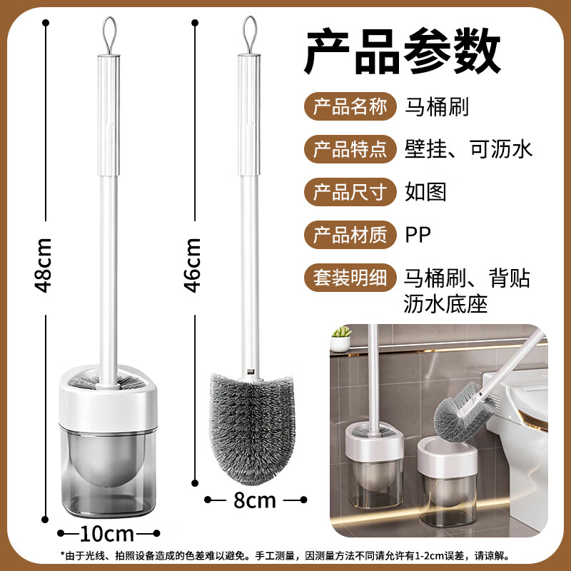 - 壁挂式易取用: 马桶刷子配备有壁挂结构,不使用时可以轻松挂在墙上,既节省空间又方便拿取。