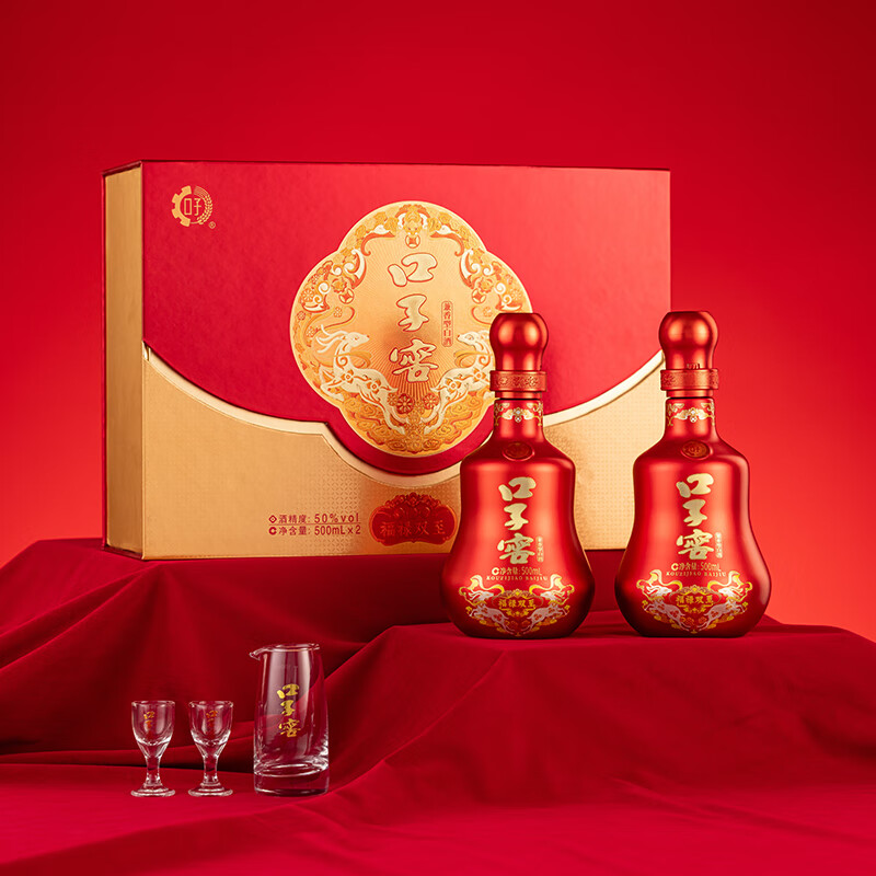口子窖 福禄双至 十年型 兼香型白酒 50度 500ml*2瓶 礼盒装 中秋礼品