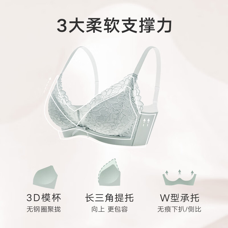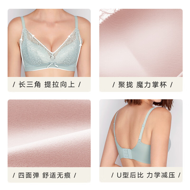 - 无钢圈设计:更贴合胸部曲线,让穿戴更加自然舒适;