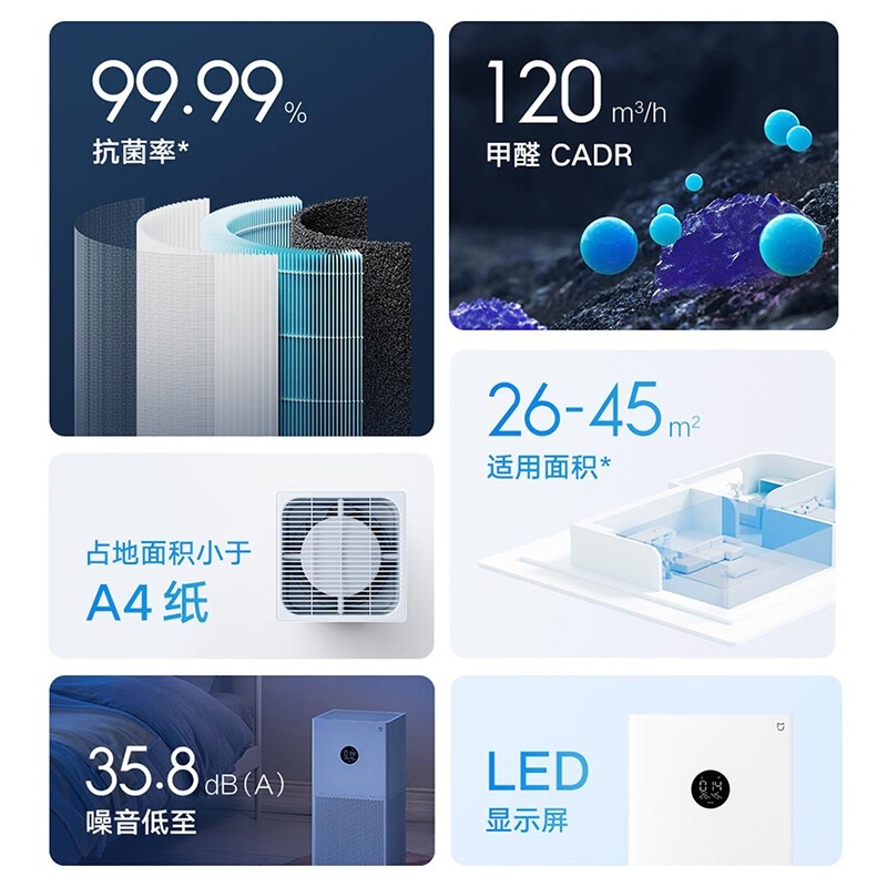 - 强力除甲醛、除菌与异味:这款小米空气净化器,有效去除室内空气中的有害物质。