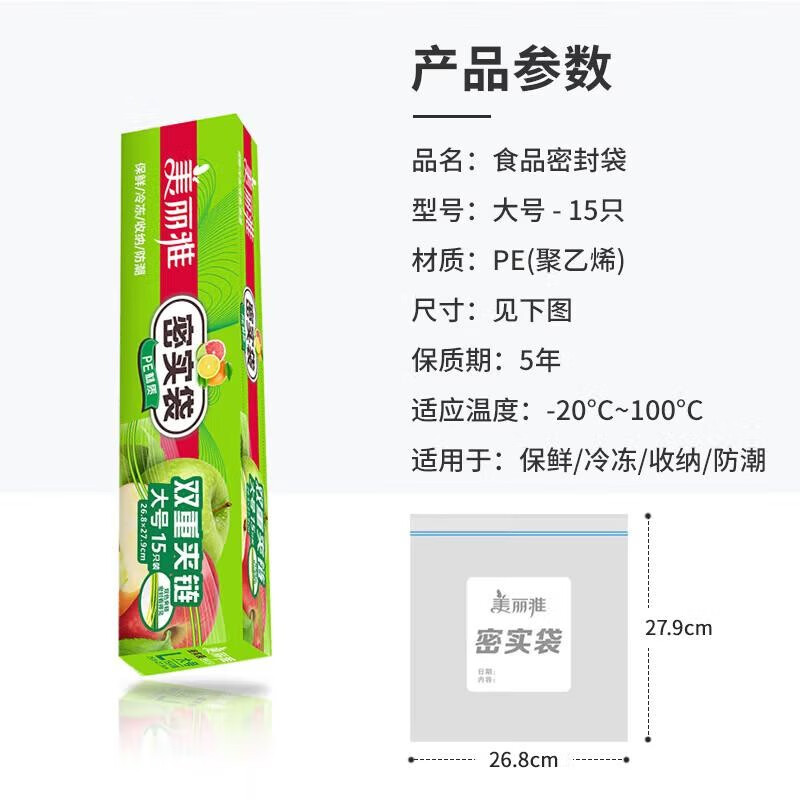 - 容量丰富: 内含15只密封袋,满足日常使用需求。
