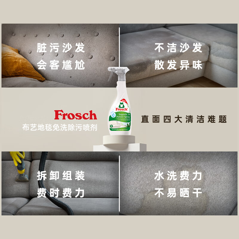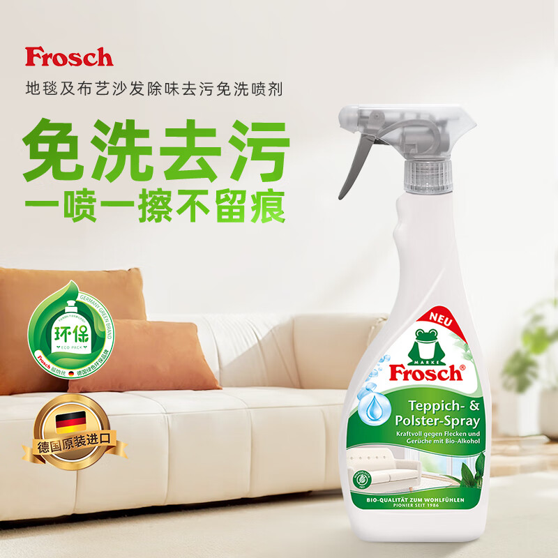 Frosch品牌为您带来的这款地毯及布艺沙发除味去污免洗喷剂,是家居清洁的理想选择。它具有高效清除异味与污渍的功能,并且使用方便快捷。