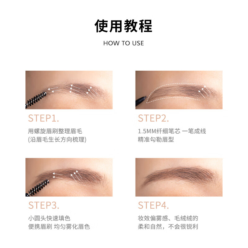 - 双头设计:集描线和填色于一身,让化妆更便捷。