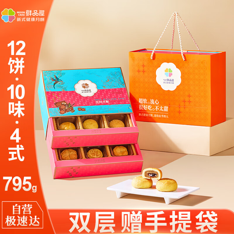 中秋佳节来临之际,鲜品屋为您带来经典之选——月饼礼盒“花间月影”,包含七款不同口味的精致月饼共计十二饼。每一颗月饼皆采用优质原材料精心制作而成,确保每一位品尝者都能享受到最纯正的味道。