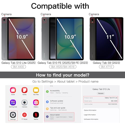 - Compatibility: Designed for Samsung Galaxy Tab S9 11-inch and Galaxy Tab S10 Lite/S10 FE/S9 FE 10.9-inch tablets.