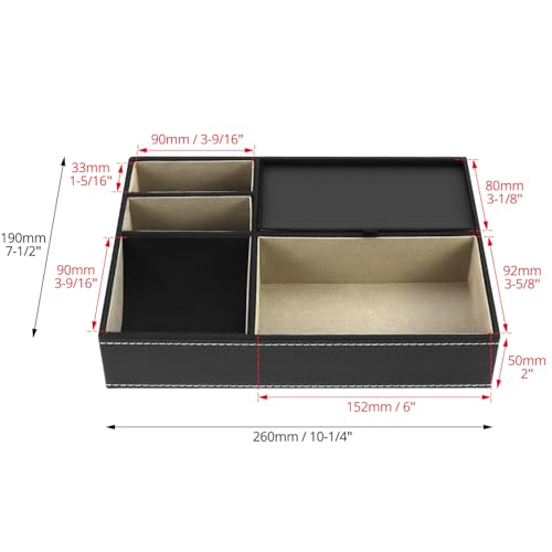 QWORK’s Valet Trays are the perfect solution for anyone looking to add a touch of elegance and organization to their daily routine. These trays boast an eye-catching PU leather design with a soft felt interior that keeps your items in place.