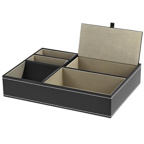 - Multiple Compartments: 5 compartments of varying sizes, including one with a lid for secure storage.