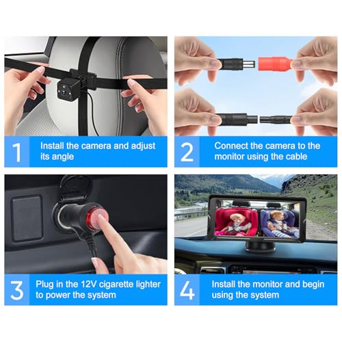 - Easy Installation: Securely attach the camera to the headrest, connect it to the dashboard monitor, and plug into your car’s cigarette lighter outlet.