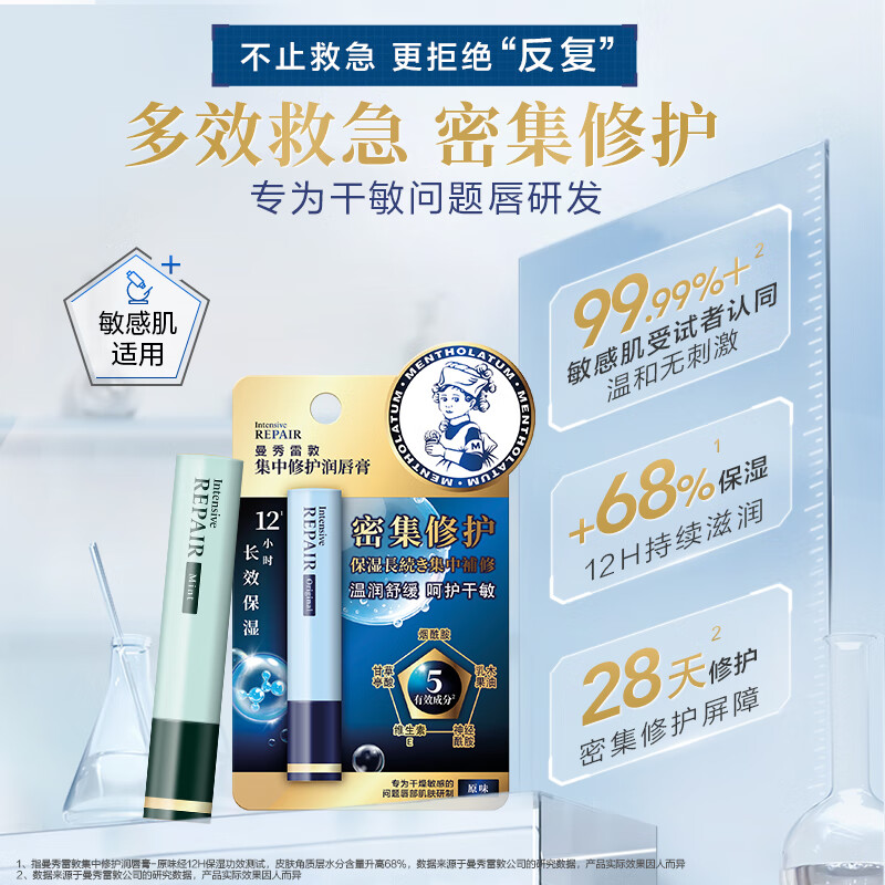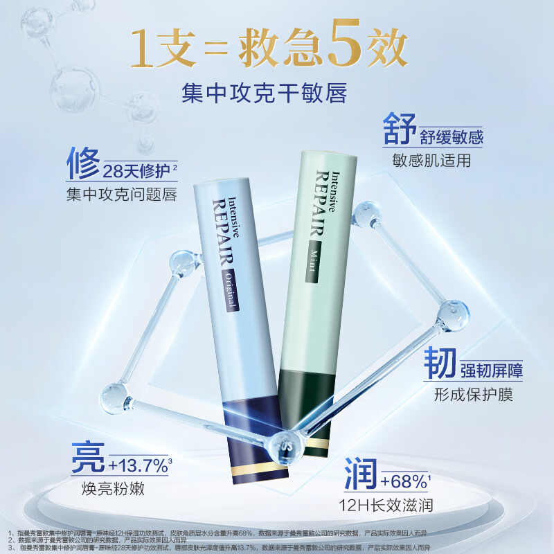 这款由人气明星张艺兴代言的曼秀雷敦集中修护润唇膏,特别适用于干燥季节或长时间待在空调环境下的用户。独特的薄荷味带来清凉愉悦感受的同时,给予双唇深层保湿与修复。