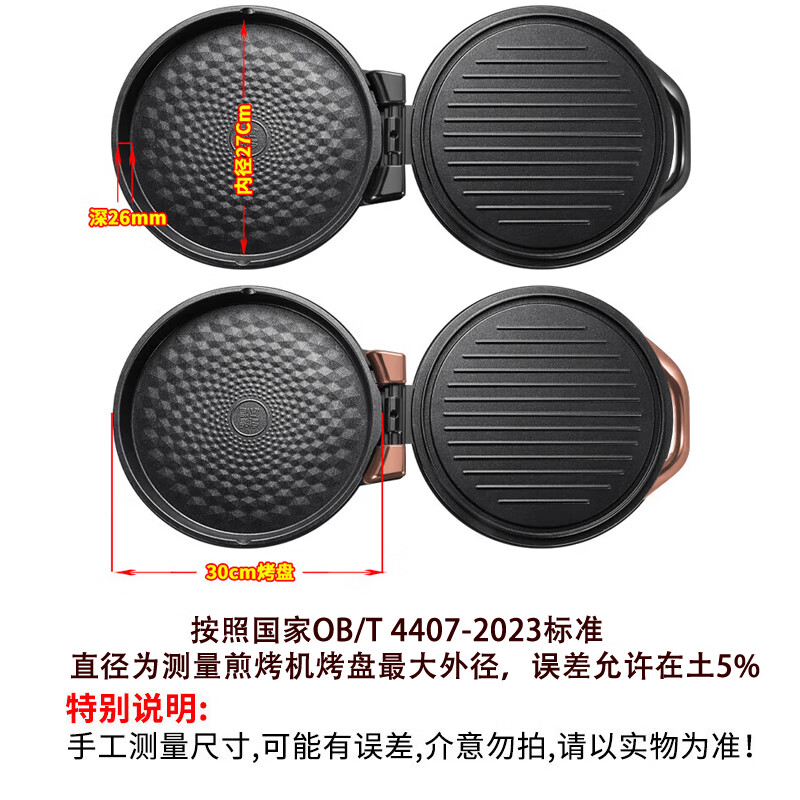 - 大火力加热:30CM直径烤盘,双面独立控温,满足各种烹饪需求。