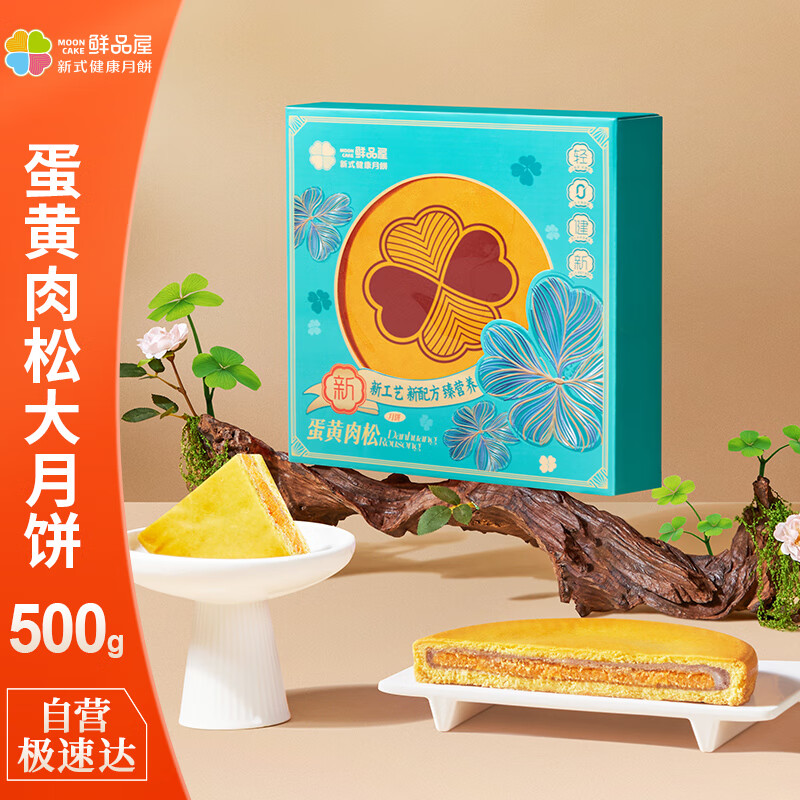 鲜品屋蛋黄肉松月饼500g仅售22.95元,好评如潮,是中秋佳节与企业团购的理想选择。