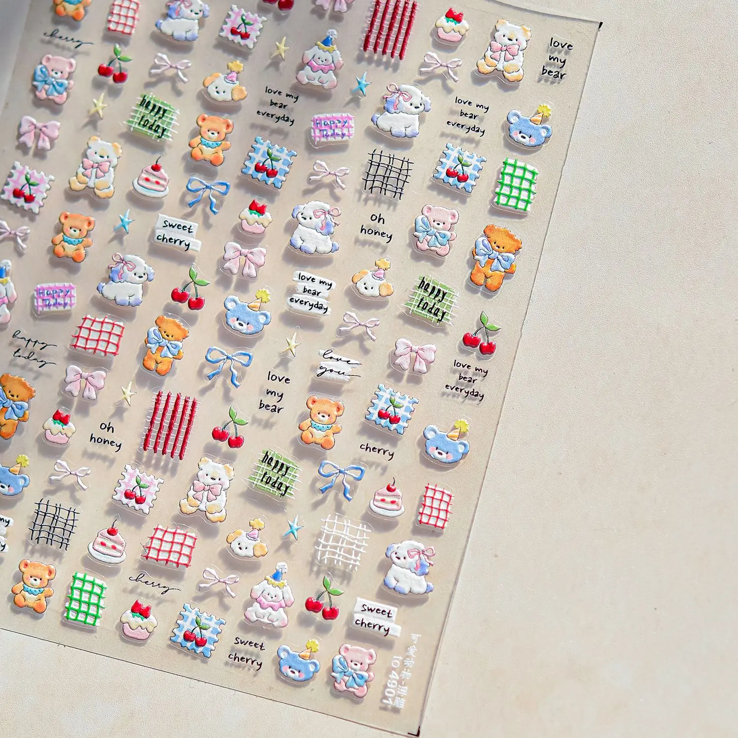 Are you looking to elevate your nail art game with something cute and unique? Our Cute Animals Bear Dog Cake Sweet Cherry Grid Bowknot Star Line Fruit Relief Self Adhesive Nail Art Stickers are here to bring joy and creativity to your manicures! These charming stickers are perfect for adding a touch of sweetness and whimsy to any nail design.