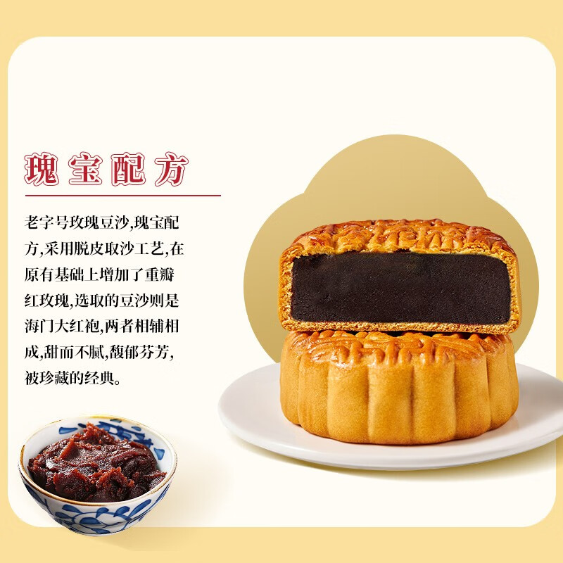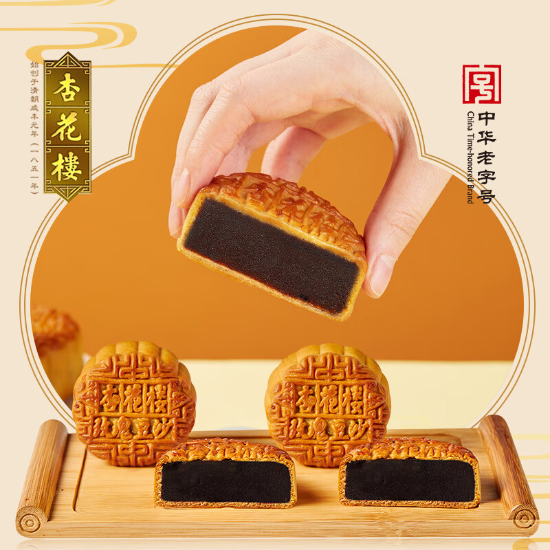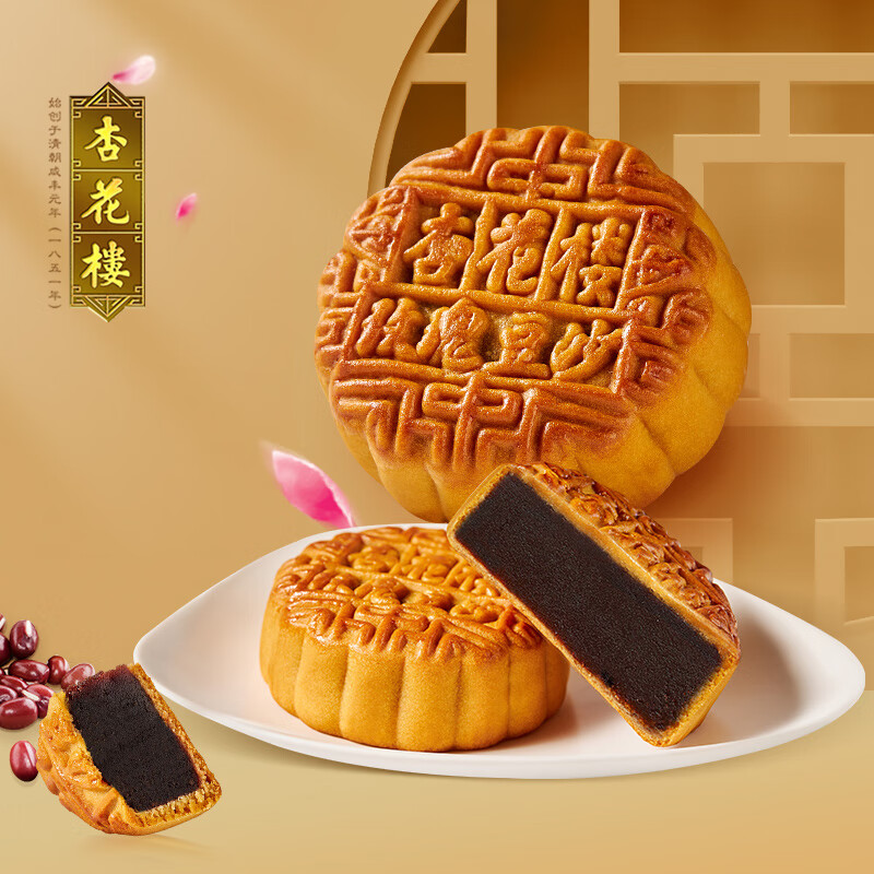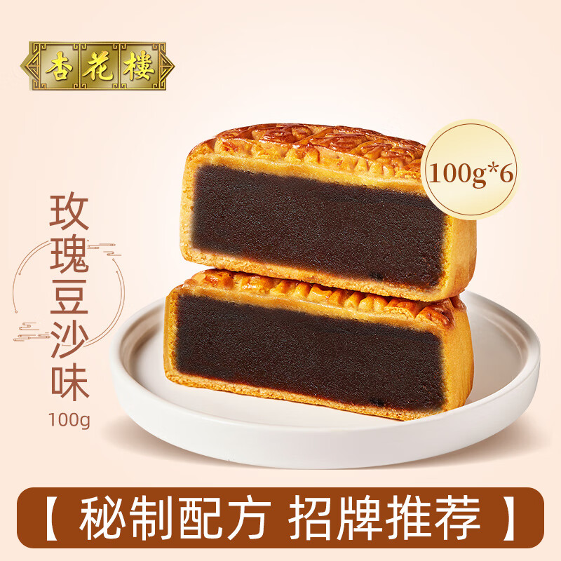 - 品牌瑰宝:杏花楼的广式玫瑰豆沙月饼是老字号的经典之作。每一口都是匠心独运,细腻香甜的玫瑰豆沙配以新鲜肉松和五仁蛋黄,口感层次丰富,回味无穷。