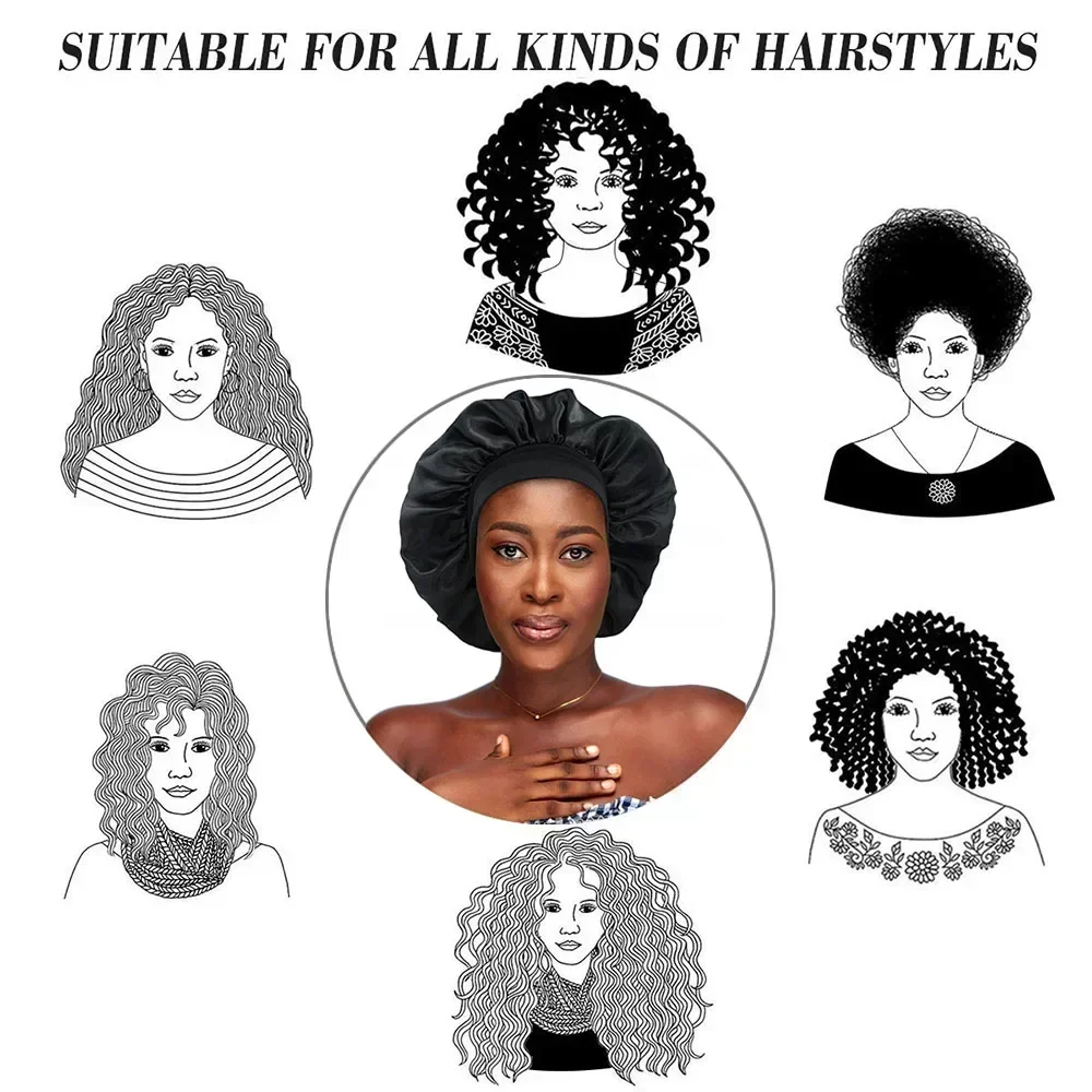 - Satin Material: Our cap is made from high-quality satin that gently glides against your hair, preventing frizz and tangles.