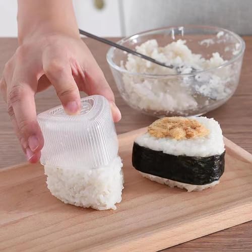 - Includes: Two large triangular molds, two small molds, one rice spoon