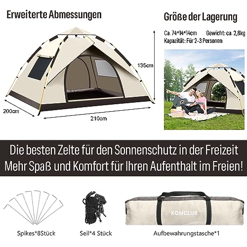 KOMCLUB Automatic Tent – Lightweight Camping for 2-3 People