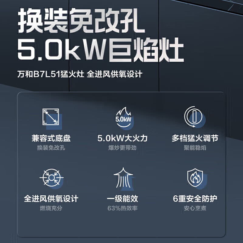 万和B7·5kW天然气燃气灶以其高效燃烧技术与一级能效获得了广大用户的青睐。