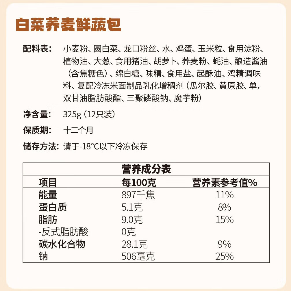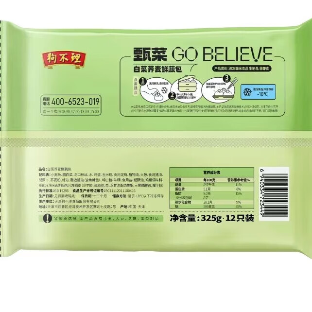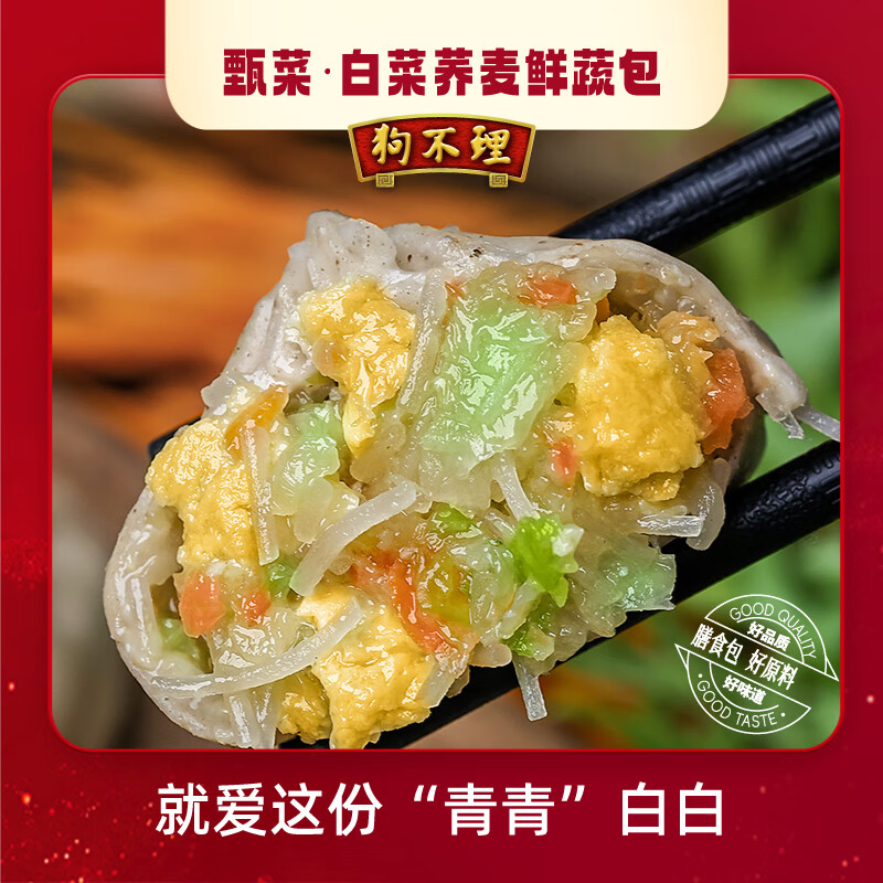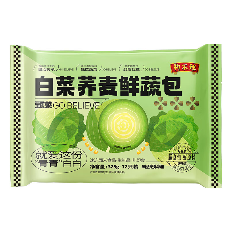 狗不理包子纸皮素馅白菜荞麦鲜蔬包325g 12个