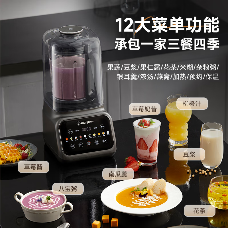 西屋(Westinghouse)无刷破壁机变频降噪1.5L加热全自动榨汁机钛涂层防糊柔音触控彩屏辅食机WPB15J37-W,现优惠价仅需¥1095!这款产品不仅拥有超高的好评率(97%),更配备了1.5L大容量内胆和独特的钛涂层技术,确保榨汁更加顺畅无阻。其破壁、加热一体化设计更是让操作便捷高效。