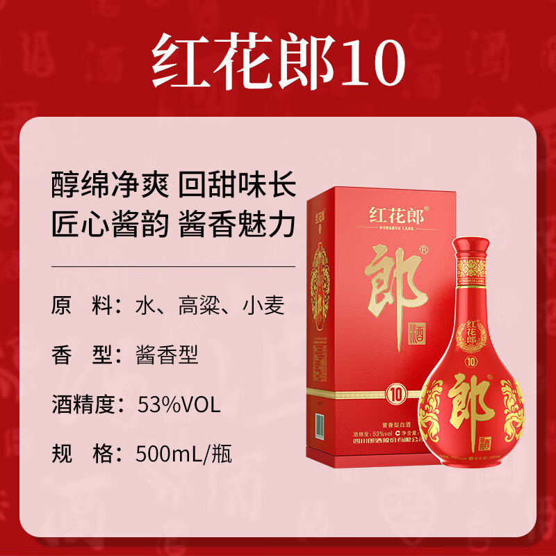 郎酒红花郎10第5代,仅售500元的高品质酱香型白酒。双瓶装设计满足您的各种需求,99%的好评率彰显品质与人气。