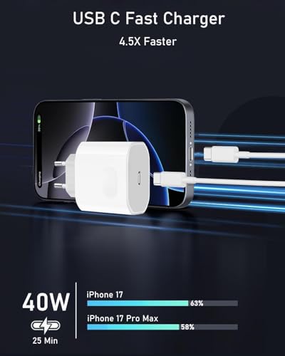 The ANVSI 40W Fast Charging USB-C Charger is an essential accessory for anyone using the latest iPhone models, including the iPhone 17 series. This charger delivers quick power-ups in a compact form factor with built-in safety features.