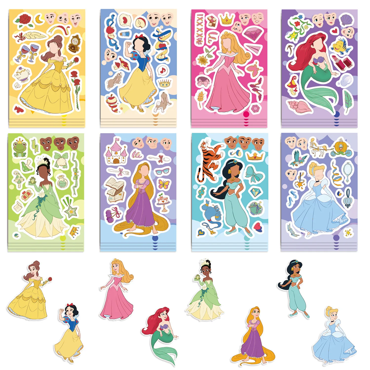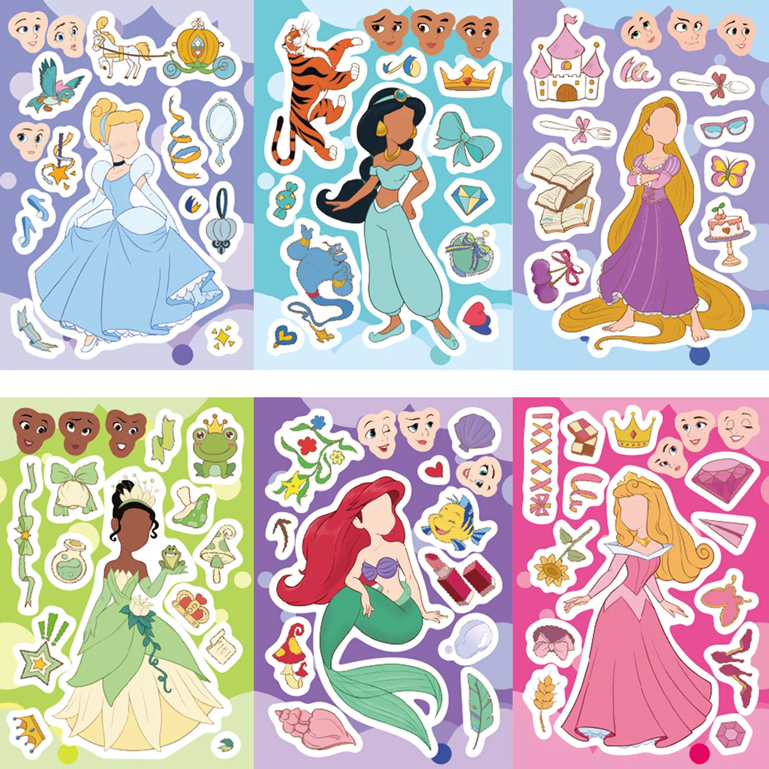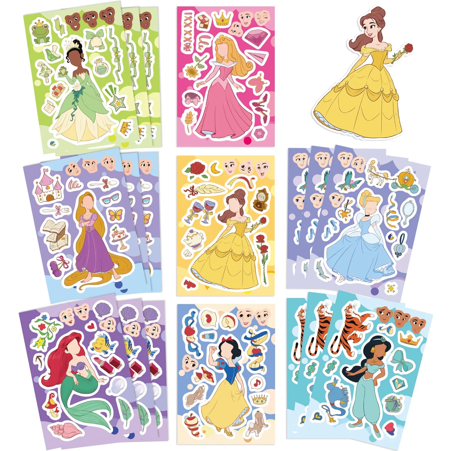 8/16/24 Sheets Disney Princess Children Puzzle Stickers