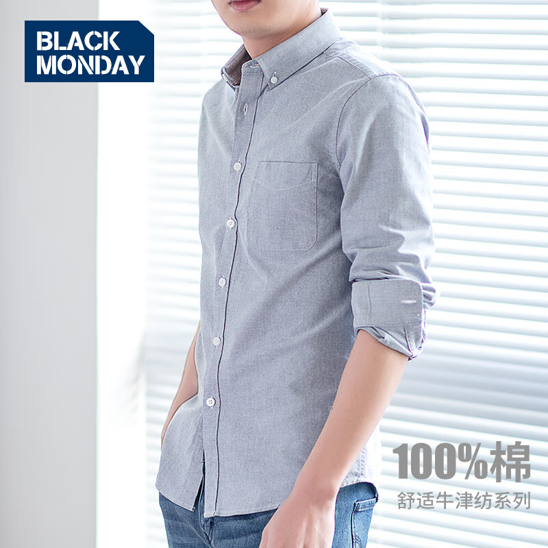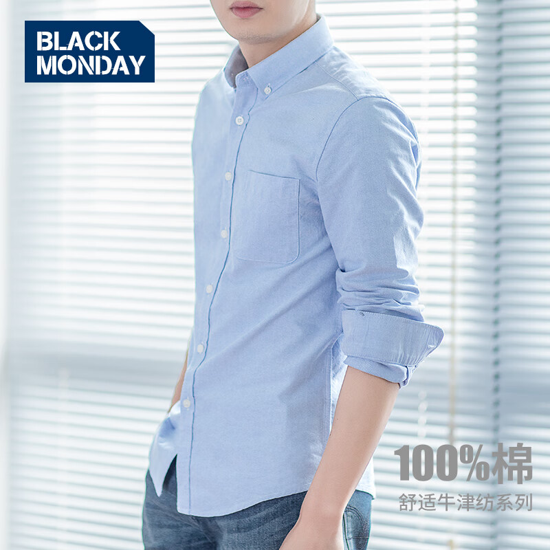 BLACKMONDAY 纯棉长袖衬衫,商务休闲必备,优质纯棉面料,修身剪裁,抗皱免烫工艺。现价仅需¥129.5,高性价比之选!