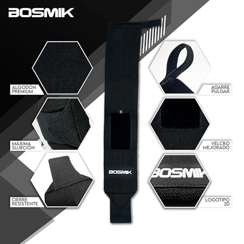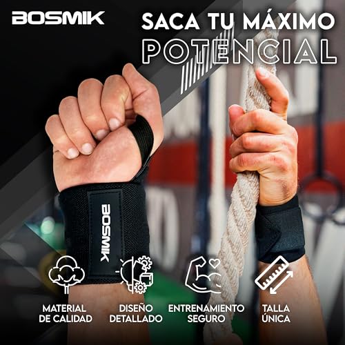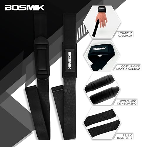 Maximize your strength training with Bosmik's complete set of straps and wrist wraps, featuring protection and comfort. See specs & gallery.
