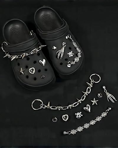 Crocs lovers can now spice up their footwear with these Gothic Y2K bling shoes decorations that feature synthetic diamond accents and chain accessories. Enhance the style of your Crocs or other shoes today!