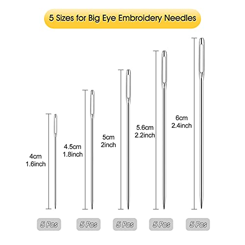 A kit of 25 large eye sewing needles in 5 sizes, with accessories. See specs & gallery.