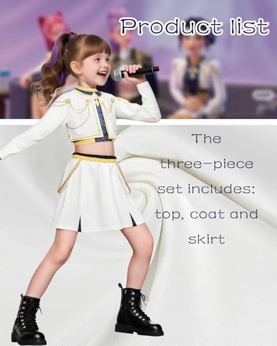 Introducing the ultimate Zoey Stage white costume for girls! This stylish outfit is inspired by the K-pop character from a hit film, making it perfect for cosplay events, Halloween parties, or any themed gathering. With its iconic look and comfortable fit, this costume lets you channel your inner pop star.