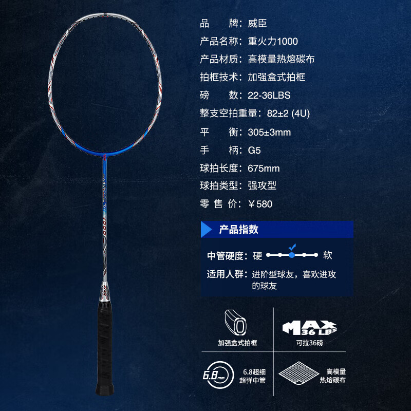 威臣重火力羽毛球拍逐风全碳素比赛训练进攻防守一体单拍 – 优惠价:181 元