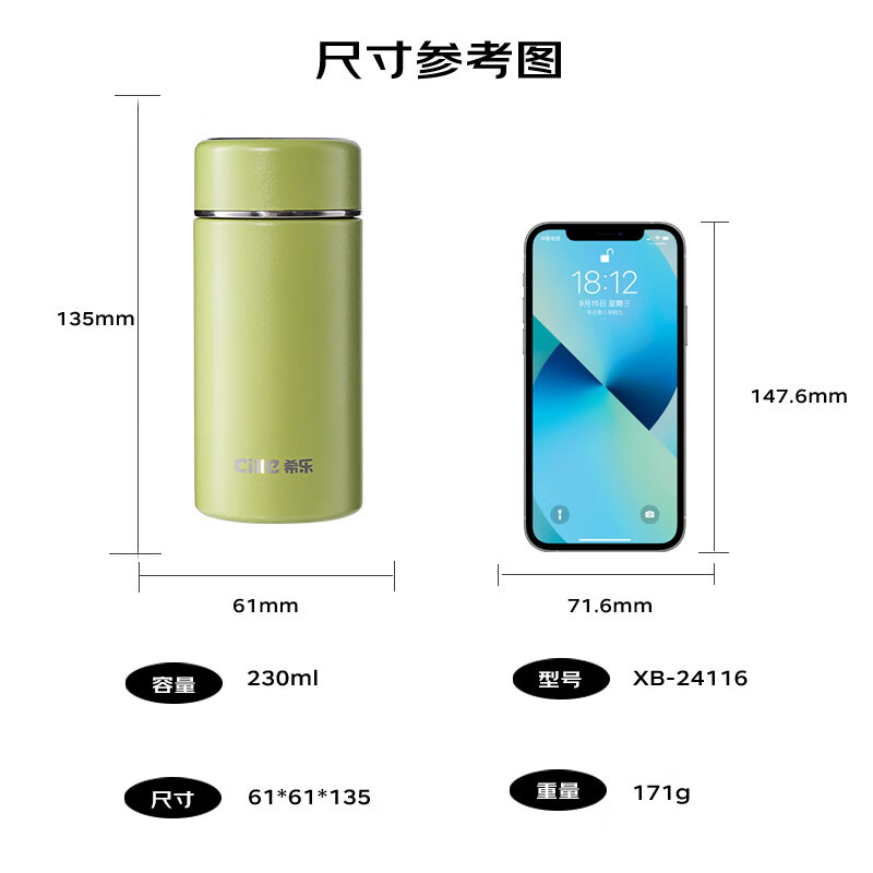 - 轻巧便携设计:重量轻、体积小,方便携带且易于收纳。容量为230ml,适合随时随地享用喜欢的饮料。