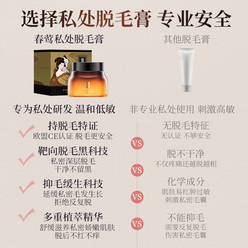 这款春莺(Joriole)脱毛膏,专门针对私密处、刮胡子等部位的细致需求。它以高效的蜜蜡配方和温和的成分确保您的肌肤在去除多余毛发的同时得到呵护。