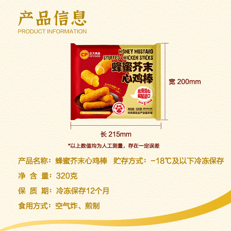 正大鸡肉炸鸡 速冻半成品方便菜食品 烧烤食材 早餐食材 蜂蜜芥末心鸡棒320g