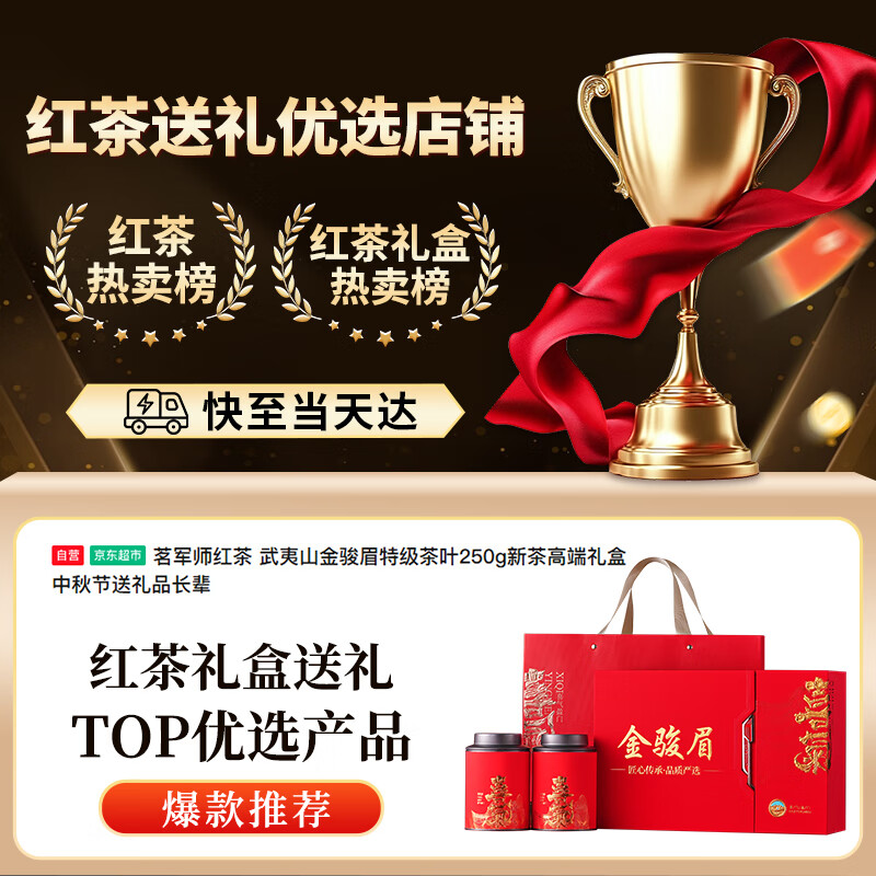 **【茗军师红茶】武夷山金骏眉特级茶叶250g,高端新茶礼盒,中秋送长辈佳品。现仅售¥158!