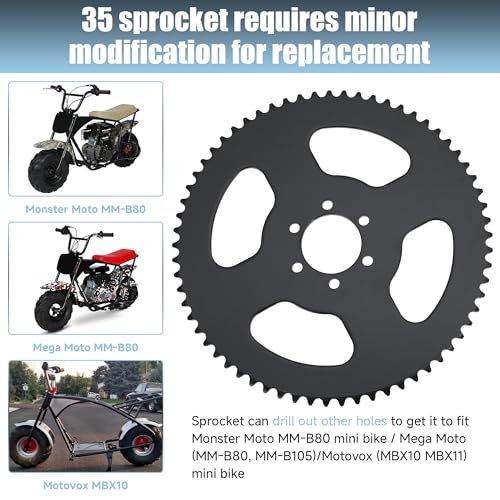 - Adjustable Sprocket: Can be drilled for Monster Moto MM-B80/Mega Moto (MM-B80, MM-B105) Motovox (MBX10 MBX11).