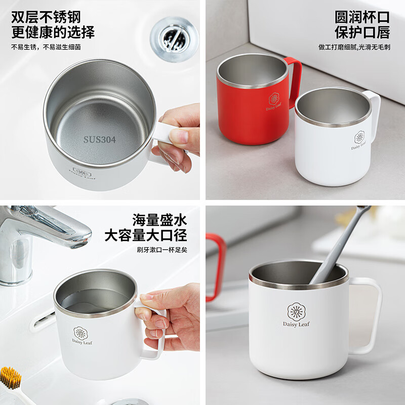Daisy Leaf 304不锈钢漱口杯高颜值情侣轻奢刷牙杯抗菌牙缸