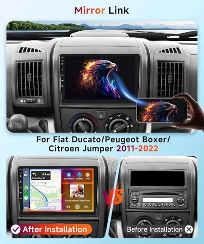 This radio is ideal for drivers of newer Fiat Ducato, Peugeot Boxer, and Citroen Jumper vehicles seeking advanced features such as Android Auto compatibility, Bluetooth connectivity, GPS navigation, and rear-view camera support.