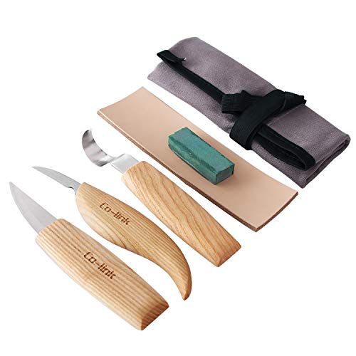 The Co-link Wood Carving Hook Knife Set is an essential tool kit for any wood carver looking to craft intricate designs with ease. This set includes a hook knife, curved cutter, universal cutter, leather sharpener, and polishing wax, making it suitable for both beginners and professionals.