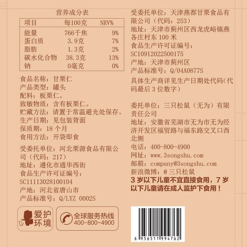 三只松鼠甘栗仁50g*5袋仅售17.9元