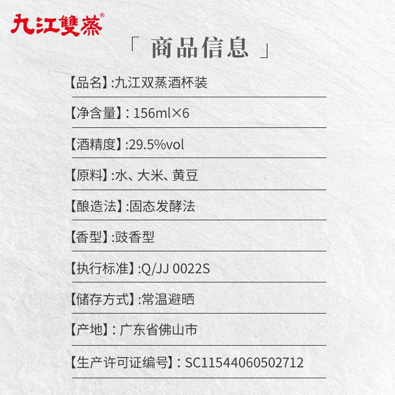 九江双蒸 豉香型白酒 29.5度是精选上等米酿制而成的一款小瓶装白酒。其独特豉香味和适宜的酒精度数让这款酒不仅适合日常饮用,也是馈赠亲友的理想选择。