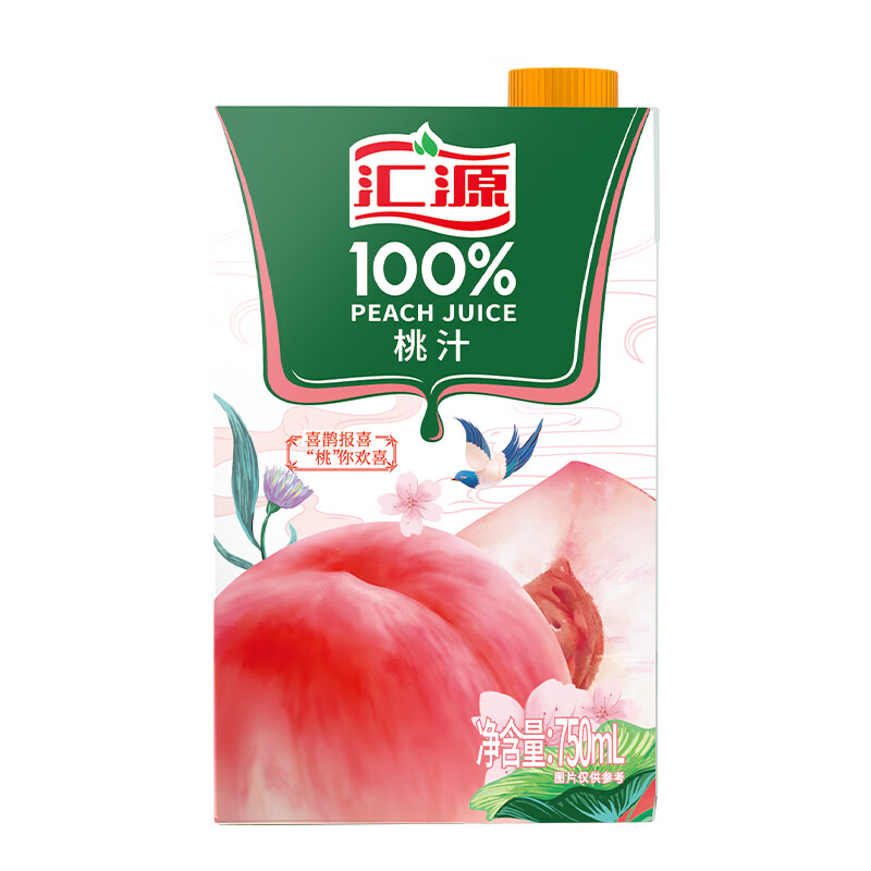 汇源100%桃汁750ml,家庭装尝鲜价仅售16.5元。天然果汁,无添加,口感纯正。限时优惠中!