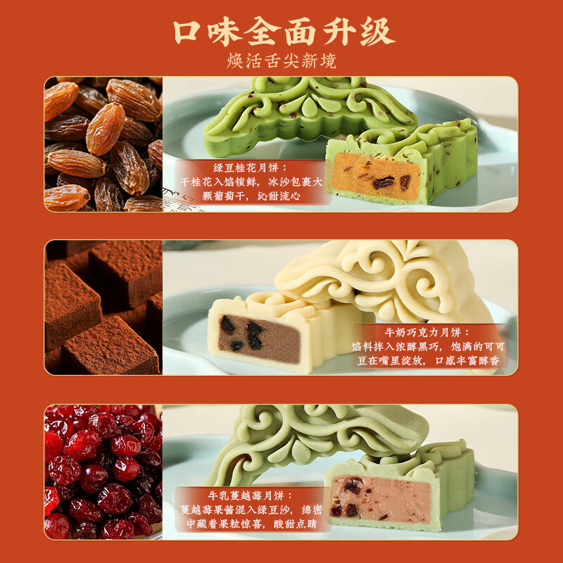 • 口味多样:包含多种口味和形状的月饼,满足不同人群的需求。