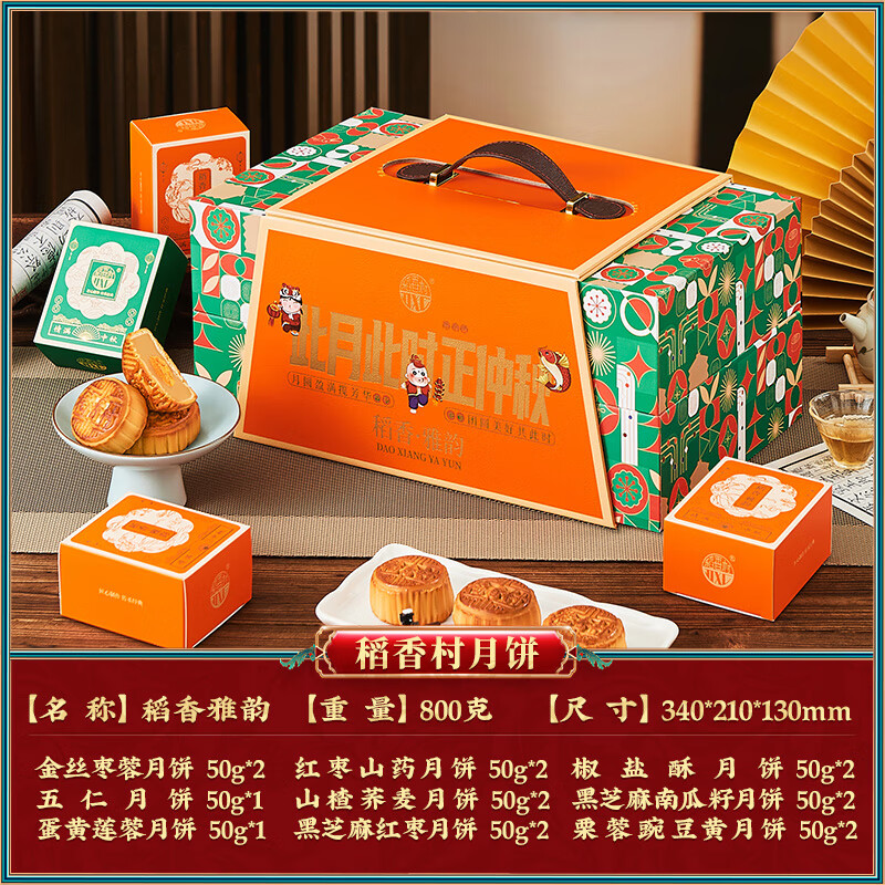 原价高达优惠前价格,现仅需 136 元即可享受正宗稻香村月饼的美味。这盒稻香雅韵月饼礼盒重达 800g,内含蛋黄莲蓉与五仁两种经典口味,无论是家庭聚会还是公司福利都十分合适。