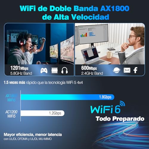 - Faster Wi-Fi 6 Speed: Up to 1800Mbps, ensuring seamless streaming and gaming.