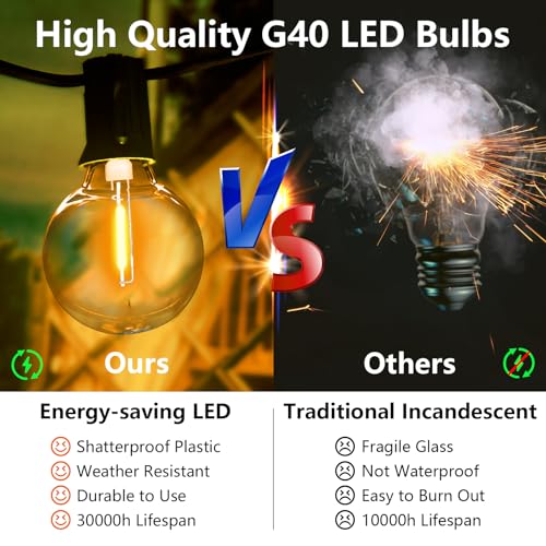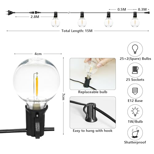 Segotendy Exterior LED Garland – 15M, 25+2 G40 LEDs