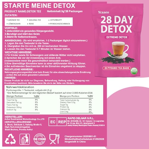 Promote natural balance with Ycaaeo's 28-day detox tea, featuring high-quality oolong and peach honey extracts. Enjoy a pleasant intestinal feeling. [See specs & gallery.]